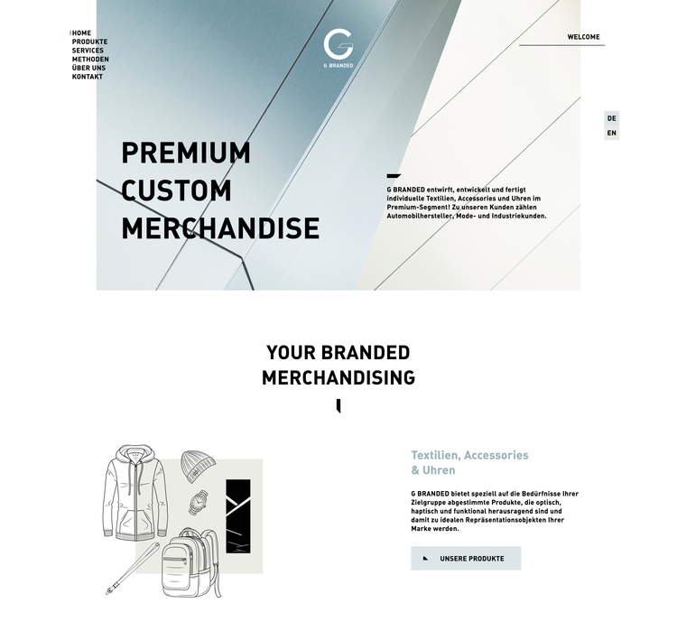 G Branded entwirft, entwickelt und fertigt individuelle Textilien, Accessories und Uhren im Premium-Segment! Zu den Kunden zählen Automobilhersteller, Mode- und Industriekunden. Als langjähriger Agentur Partner für Markenthemen konzipierten, designten und entwickelten wir die neu Unternehmens-Webseite für G Branded. www.gbranded.com