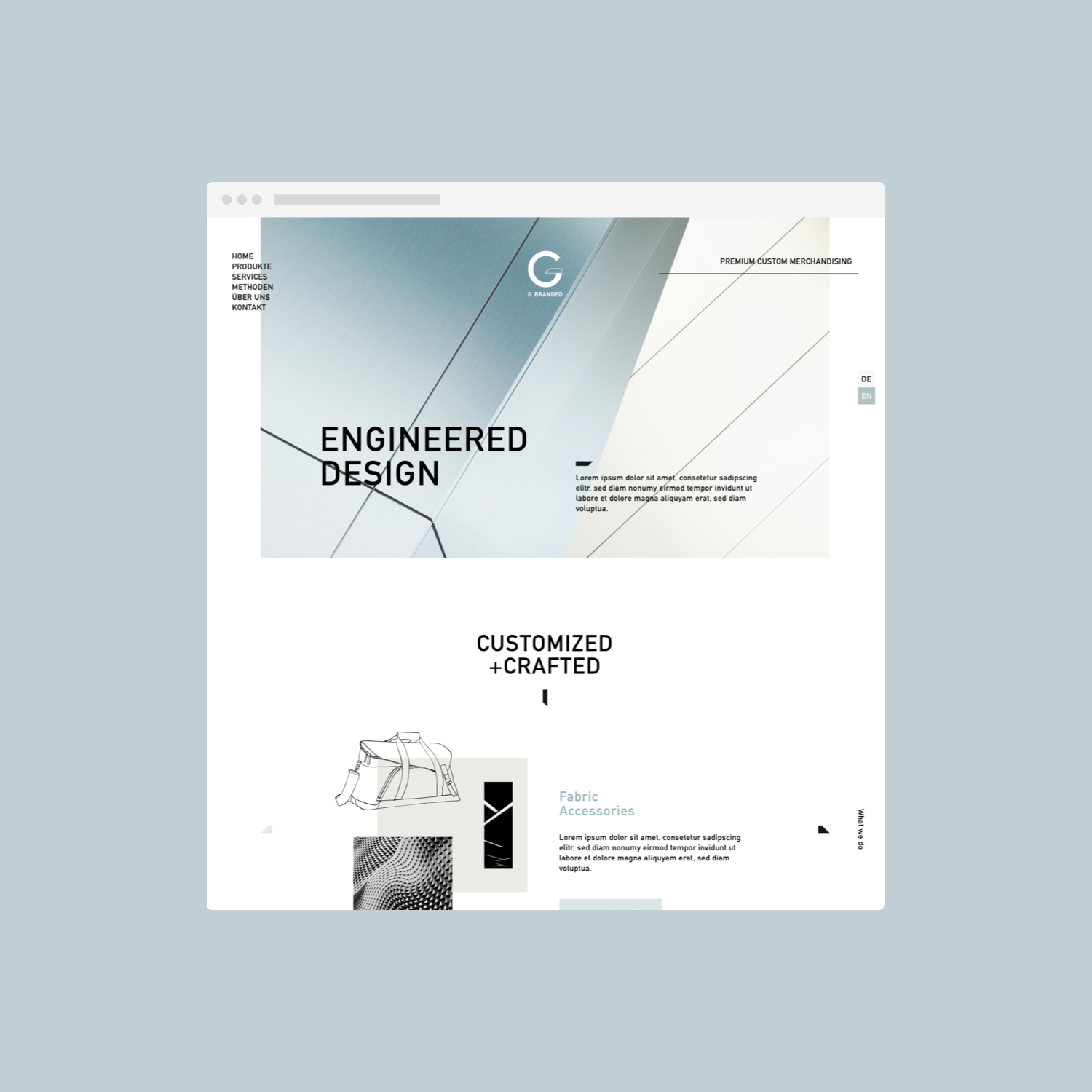 G Branded entwirft, entwickelt und fertigt individuelle Textilien, Accessories und Uhren im Premium-Segment! Zu den Kunden zählen Automobilhersteller, Mode- und Industriekunden. Als langjähriger Agentur Partner für Markenthemen konzipierten, designten und entwickelten wir die neu Unternehmens-Webseite für G Branded. www.gbranded.com